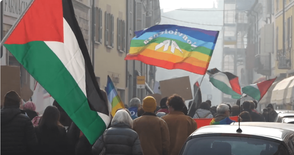 Le foto dell’articolo si riferiscono al corteo del 18 febbraio 2024 e sono tratte dal video “Corteo in sostegno al Popolo Palestinese” del canale video youtube di ARVITER (Archivio Video Territoriale dell’area Oglio Po) del filmaker Pierluigi Bonfatti Sabbioni. Il video lo potete trovare al link qui sotto: