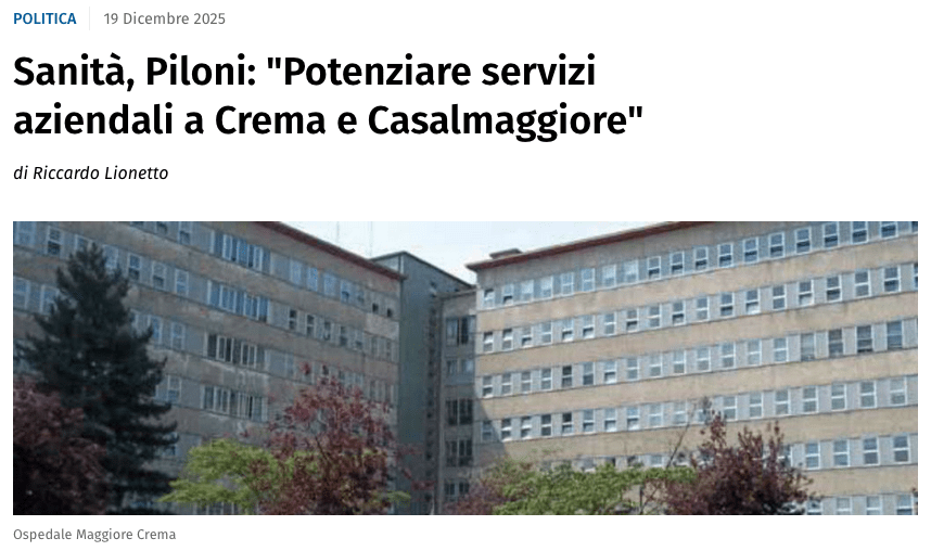Successivamente, in dicembre 2025 è stato approvato in Consiglio Regionale, nel corso dell’esame del bilancio di previsione di Regione Lombardia, l’o.d.g. presentato sempre dal consigliere Piloni in riferimento all’adozione del Welfare aziendale anche su Oglio Po. Ad oggi di questa soluzione, che noi riteniamo ottimale, ancora non si vede nulla, soluzione, tra l’altro, già adottata in Regione Lombardia da altre Asst.